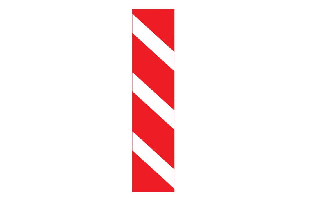 Предназначена для наклеивания на «тело» пластины дорожной «Солдатик» с одной из его сторон. Направление и расположение белых полос на красном фоне соответствует дорожному знаку 8.22.1 (объезд препятствия справа).