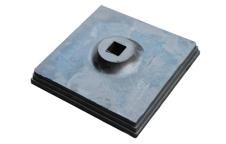 Имеет квадратную форму, в центре которой имеется паз для фиксации элемента ограждения. Самопроизвольное падение ограждения из подставки исключается. Не требуется специальной подготовки для монтажа.