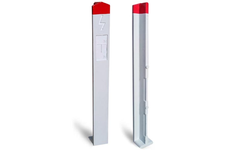 Предназначен для установки на загородных участках кабельной трассы для маркировки ее прохождения, а также для отметки местоположения муфт, поворотов трассы и маркировки концов труб, проложенных под дорогами. Дополнительно, столбик замерный устанавливается для отметки мест стыков строительных длин кабеля, если его монтируют не сразу после прокладки.