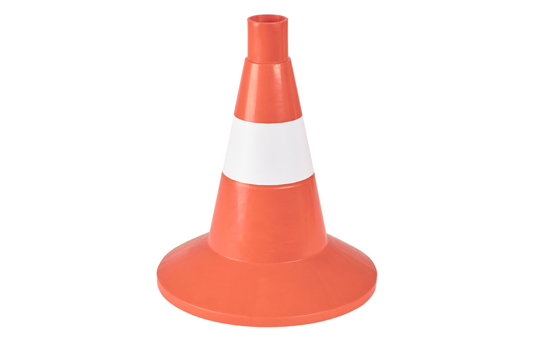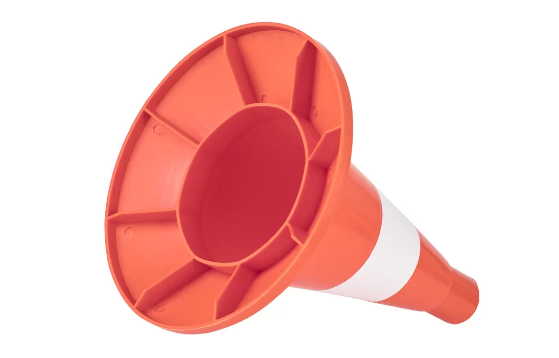 Конус упругий, изготовлен из пластика оранжевого цвета. На своей поверхности имеет 1 белую матовую полосу. Основание конуса круглой формы, без утяжелителя. Вершина конуса имеет отверстие, в которое может быть установлена веха или сигнальный фонарь ФС-4.1 (приобретаются дополнительно).
