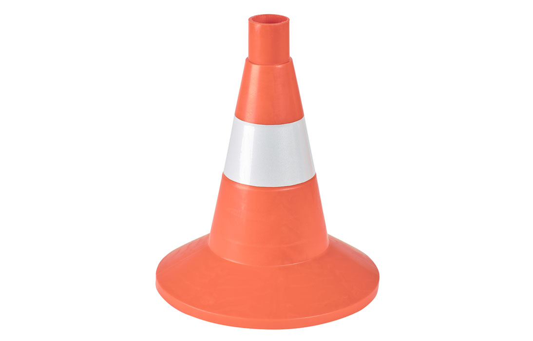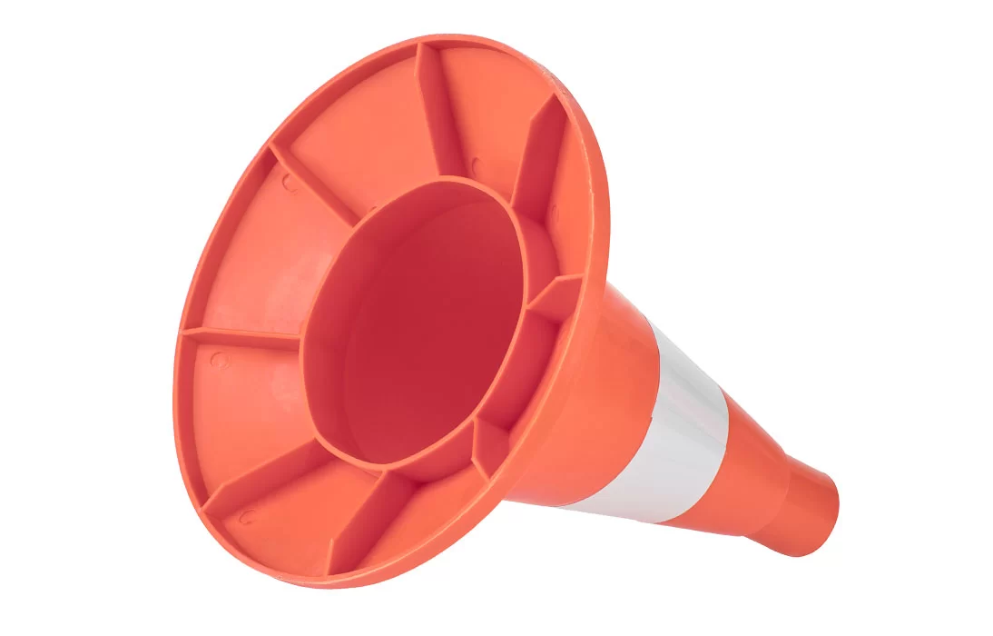 Конус упругий, изготовлен из пластика оранжевого цвета. На своей поверхности имеет 1 белую световозвращающую полосу. Основание конуса круглой формы, без утяжелителя. Вершина конуса имеет отверстие, в которое может быть установлена веха или сигнальный фонарь ФС-4.1 (приобретаются дополнительно).