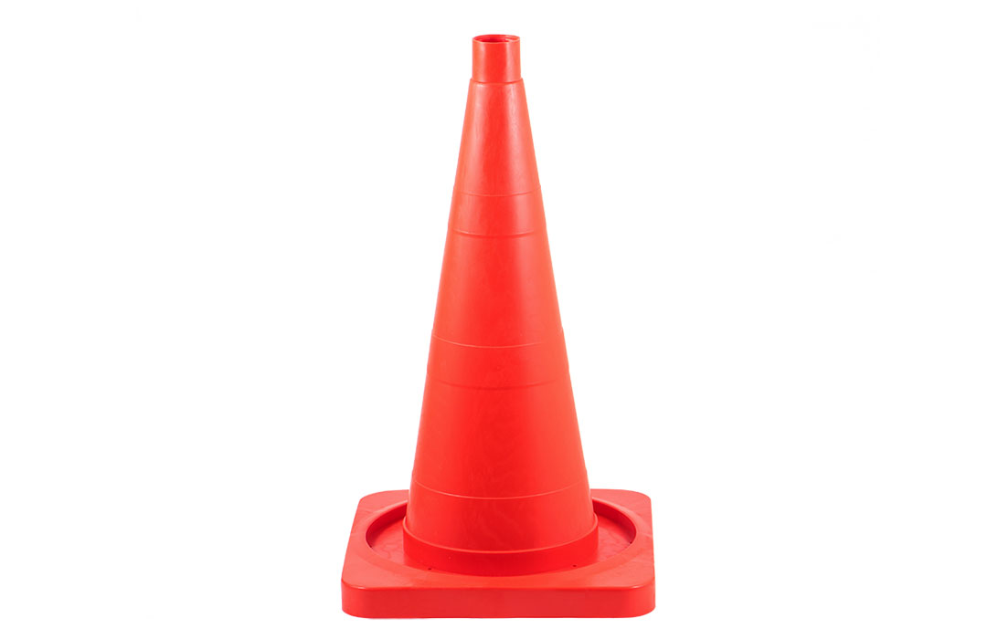 Конус упругий, изготовлен из пластика оранжевого цвета. Полос и утяжелителя не имеет. Основание конуса квадратной формы. Вершина конуса имеет отверстие, в которое может быть установлена веха или сигнальный фонарь ФС-4.1 (приобретаются дополнительно).