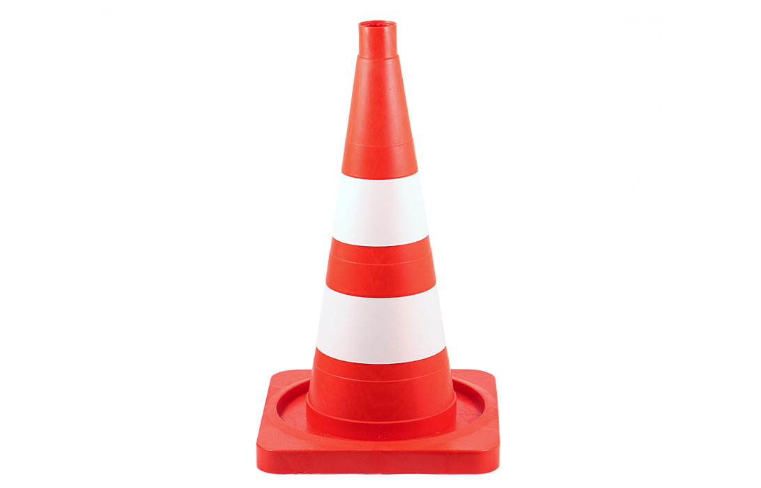 Конус упругий, изготовлен из пластика оранжевого цвета. На своей поверхности имеет 2 белые матовые полосы. Основание конуса квадратной формы, без утяжелителя. Вершина конуса имеет отверстие, в которое может быть установлена веха или сигнальный фонарь ФС-4.1 (приобретаются дополнительно).