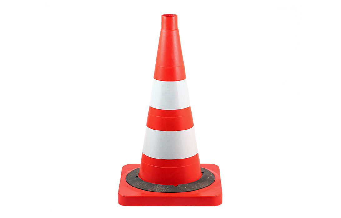 Конус упругий, изготовлен из пластика оранжевого цвета. На своей поверхности имеет 2 белые световозвращающие полосы. Основание конуса квадратной формы, с утяжелителем. Вершина конуса имеет отверстие, в которое может быть установлена веха или сигнальный фонарь ФС-4.1 (приобретаются дополнительно).