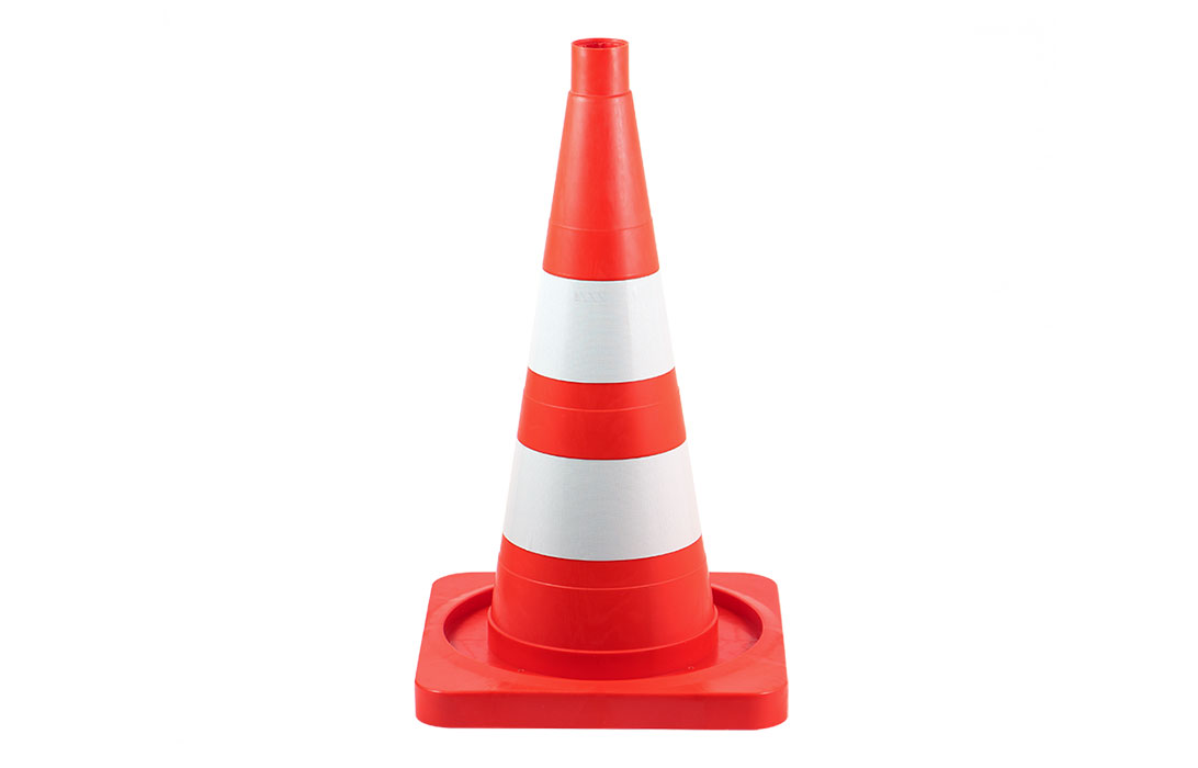 Конус упругий, изготовлен из пластика оранжевого цвета. На своей поверхности имеет 2 белые световозвращающие полосы. Основание конуса квадратной формы, без утяжелителя. Вершина конуса имеет отверстие, в которое может быть установлена веха или сигнальный фонарь ФС-4.1 (приобретаются дополнительно).
