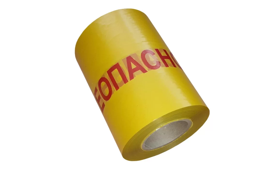 Производится из полиэтилена ПВД. В зависимости от типа ленты имеет различный цвет надписи и ленты. Толщина – 50 мкм.