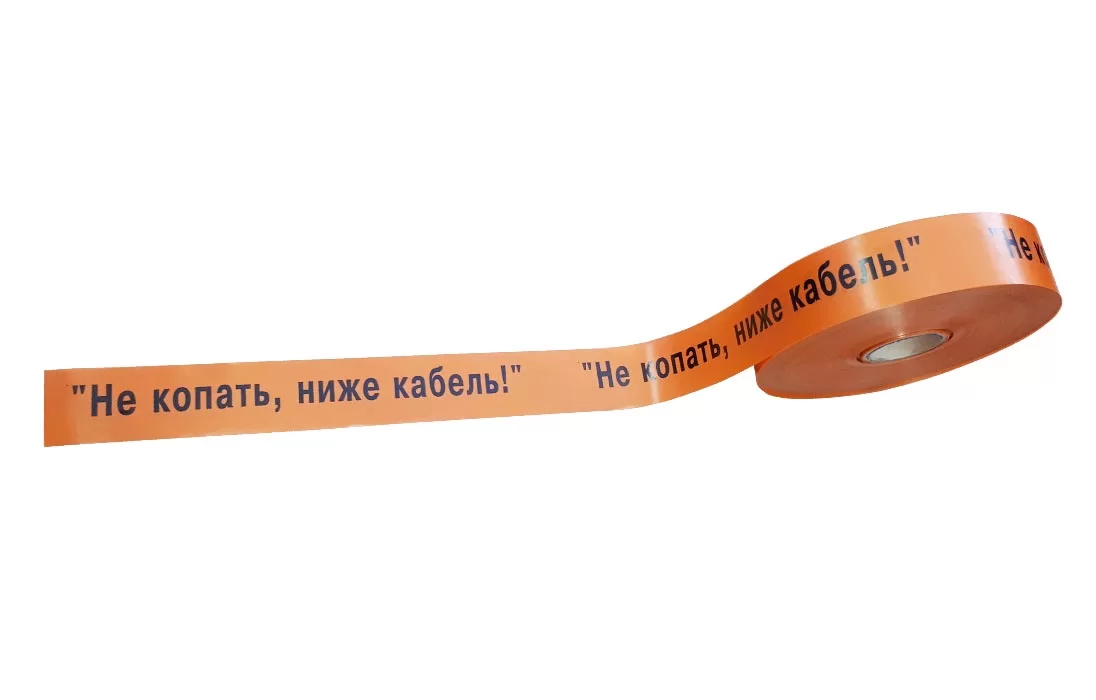 Изготовлена из полиэтилена оранжевого цвета. На ленту наносится непрерывная надпись чёрного цвета «НЕ КОПАТЬ, НИЖЕ КАБЕЛЬ». Содержание надписи и размер шрифта могут изменяться по письменному согласованию или при заключении договора на поставку.