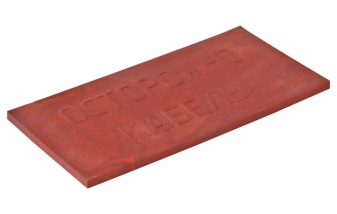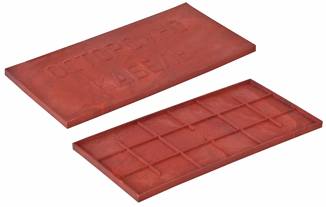 Плита закрытия кабеля (ПЗК) представляет собой изделие, изготовленное из полимерной композиции и песка, которые под действием высокой температуры перемешиваются и прессуются в форме. За счет содержания полимера плита при падении с высоты сохраняет свою целостность. ПЗК окрашена в коричневый цвет (допускаются отклонения от заявленного цвета).