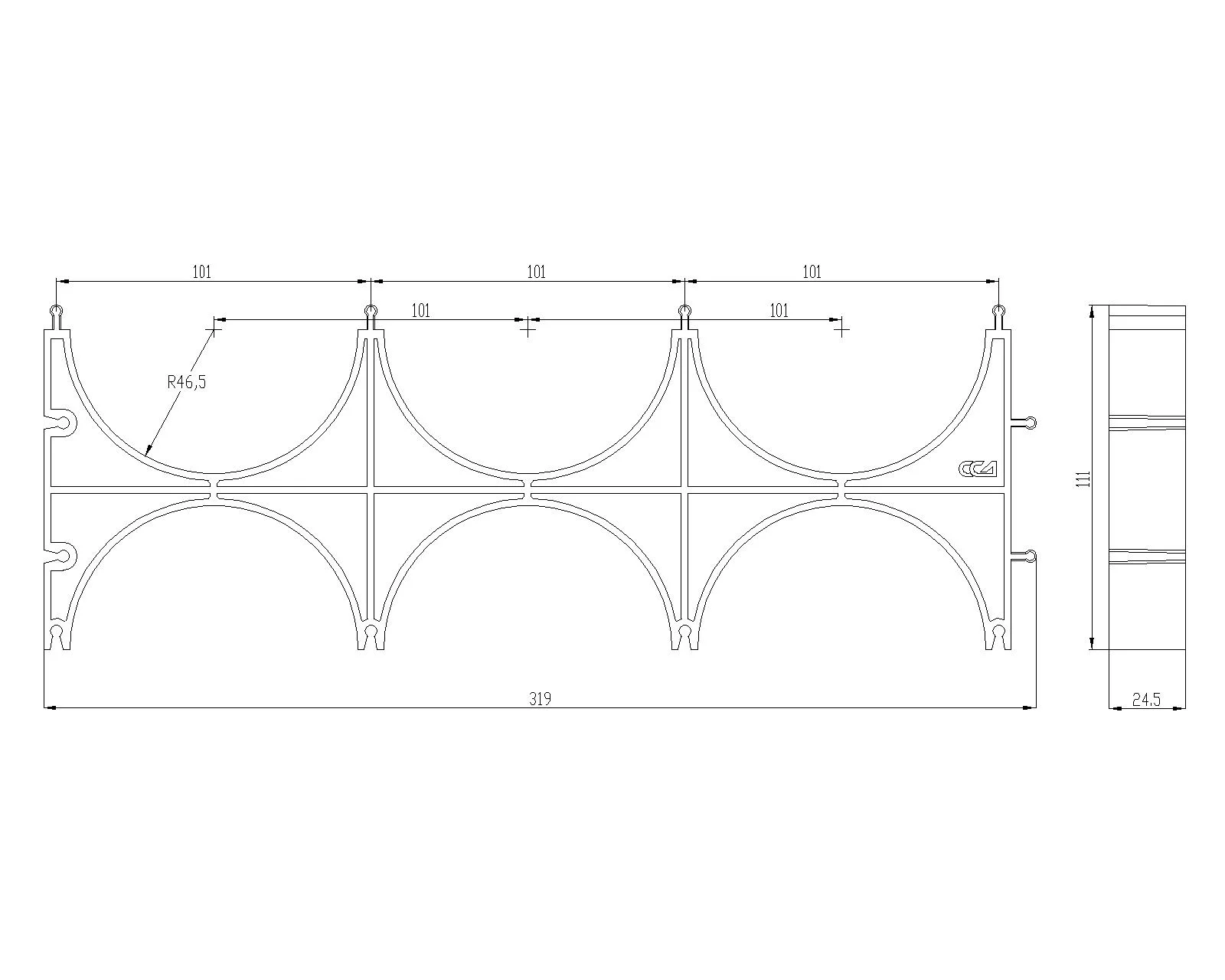 Кластер представляет собой решетчатое изделие с ложементами для укладки труб, выполненное из пластика. На корпусе кластера имеются специальные выступы и пазы для соединения нескольких кластеров в единый блок при прокладке большего количества каналов.