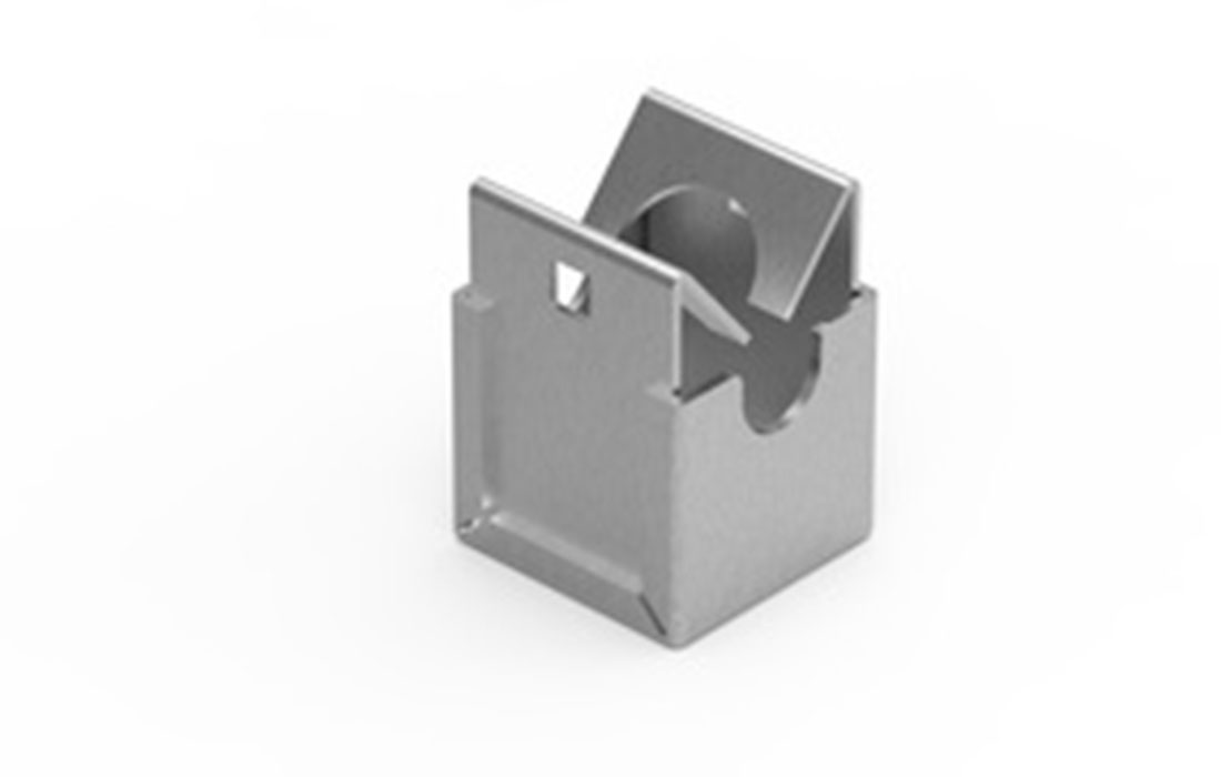 Безболтовой держатель используется для крепления катанки 8 мм на кровле и фасаде при помощи саморезов. Пруток фиксируется путем защелкивания. Изготовлен из нержавеющей стали.