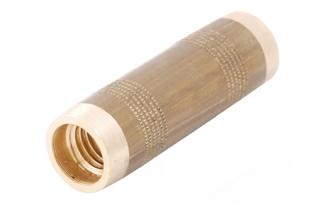 Латунная муфта предназначена для соединения резьбовых стержней заземления друг с другом. Она изготовлена таким образом, чтобы стержни соприкасались друг с другом в самом центре муфты и движущая энергия, необходимая их заглублению в почву, муфте не передавалась. Таким образом, не происходит "рассеивание" ударного импульса и механическая нагрузка с муфты снимается.