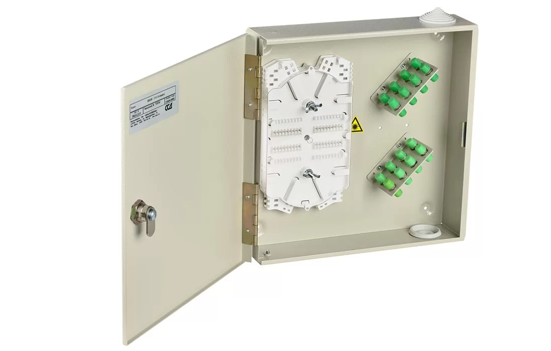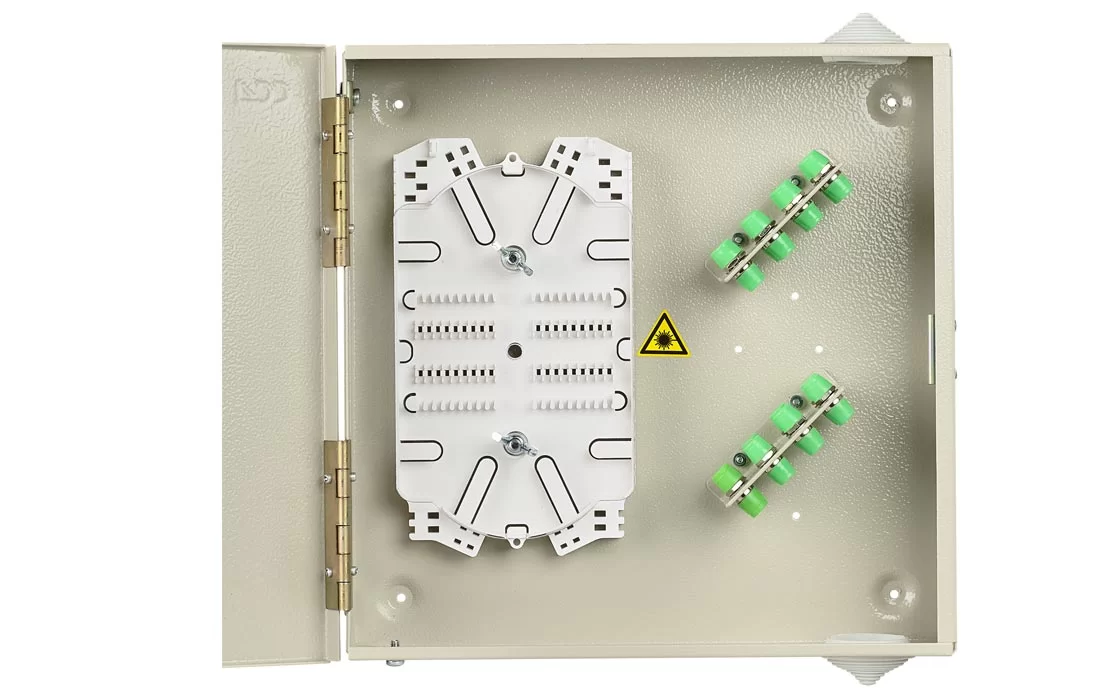 Оптические кабели разделываются и фиксируются в зоне ввода. Далее волокна в модулях поступают на кассеты для сварки с пигтейлами.