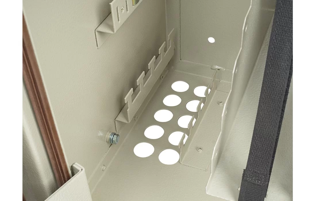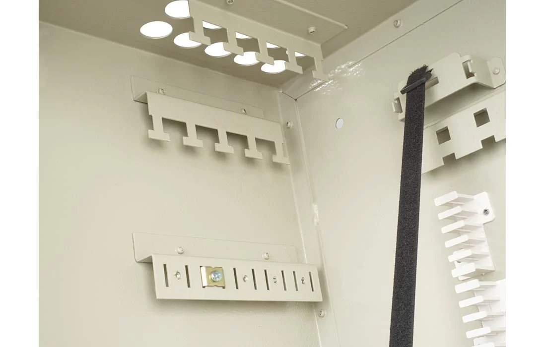 Оптические кабели вводятся в шкаф через отверстия в верхней и нижней стенках.