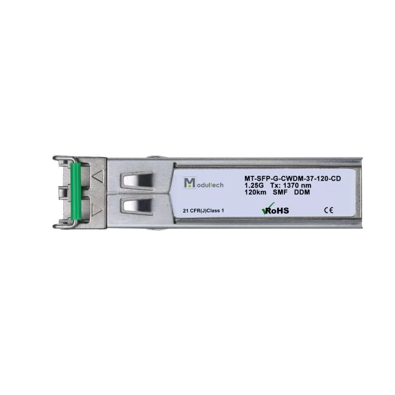 SFP CWDM трансивер MT-SFP-G-CWDM-37-120-CD, торговой марки Modultech, предназначен для работы в составе системы грубого спектрального уплотнения и поддерживает протоколы передачи: STM-8/OC-24, GigabitEthernet, 1G FiberChannel, со скоростью передачи данных – 1,25 Гбит/с.