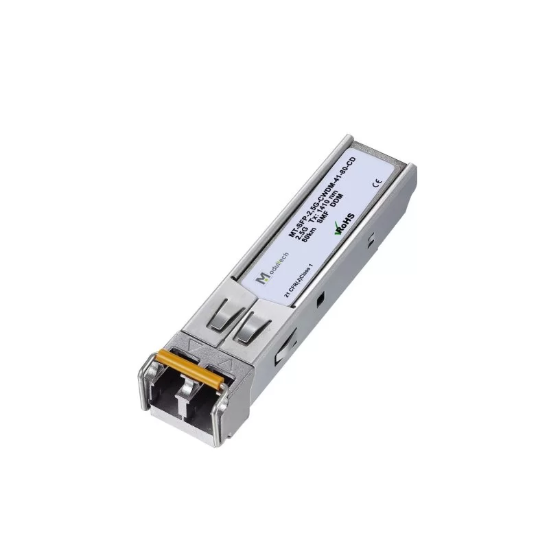 SFP CWDM трансивер MT-SFP-2,5G-CWDM-43-40-CD, торговой марки Modultech, предназначен для работы в составе системы грубого спектрального уплотнения и поддерживает протоколы передачи: STM-16/OC-48, GigabitEthernet, 1G/2G FiberChannel, CPRI, со скоростью передачи данных – 2,5 Гбит/с.