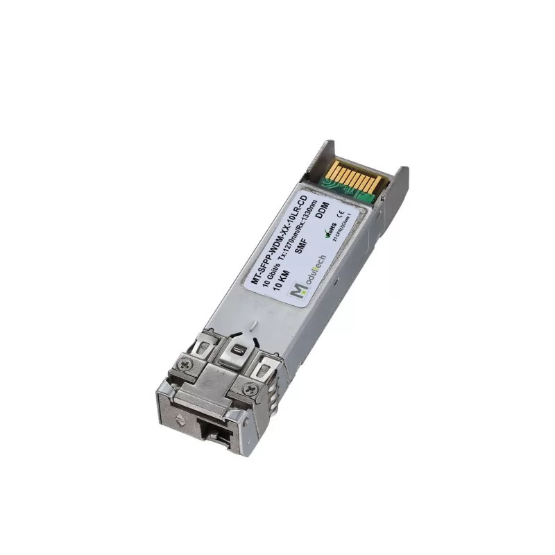 Одноволоконный SFP+ модуль – MT-SFPp-WDM-23-03LR-CD, используется для организации канала передачи данных по одному одномодовому волокну (SMF) на расстояние до 3 км. Трансивер поддерживает протоколы: STM-64/OC-192, 10GigabitEthernet, 10G FiberChannel, OTN (OTU2), CPRI option 7/8. Скорость передачи данных составляет 10 Гбит/с.