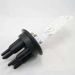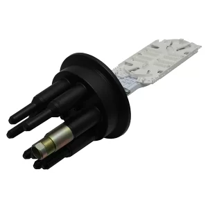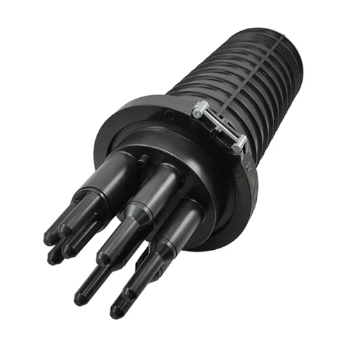 Круглые патрубки на оголовнике муфты изначально герметичны и имеют конусную ступенчатую форму с плавным переходом диаметра, что позволяет отрезать патрубок в определенном месте и подобрать отверстие максимально близкое к диаметру вводимого ОК.