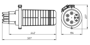 Конструкция муфты МВОТ-5120(Г) позволяет сращивать несколько кабелей вместе, а расширенное внутреннее пространство позволяет уложить транзитные модули на лотке с противоположной стороны от кассет с соблюдением всех допусков.