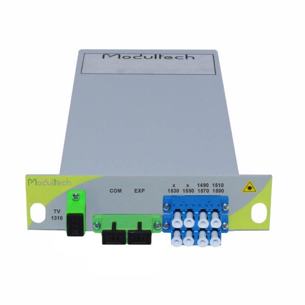 Мультиплексор MT-CT-MDM-103-L3-4454-49/59-TV3 производства компании Modultech представляет собой пассивное мультиплексирующее (суммирующее) оборудование для одновременной передачи сигналов CWDM и широкополосных КТВ сигналов в форм-факторе LGX 1/3. Используется для одновременного мультиплексирования (объединения) трех канальных CWDM сигналов + один широкополосный сигнал 1310 ± 40 нм и демультиплексирования (разделения).