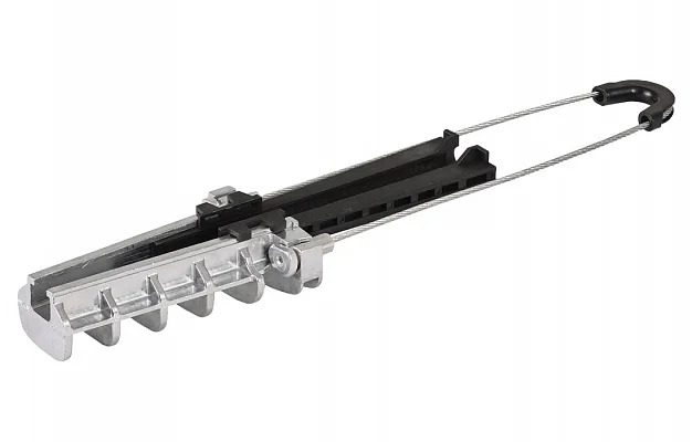 Предназначен для фиксации самонесущего изолированного провода (СИП) на магистрали и ответвлениях. Так же возможно использование зажима для оптического самонесущего кабеля (ОКСН).