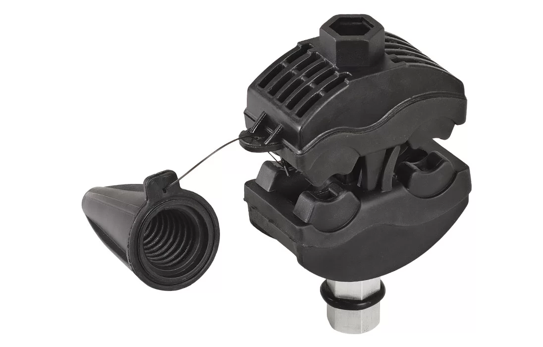 Предназначен для подключения ответвляющихся линий к магистральной. Посредством прокола соединяются два провода без удаления изоляционного слоя. Чтобы предупредить окисление в месте прокола внутри есть специальная смазка, а контакт обеспечивается пластинами с пирамидальными зубьями и калиброванной головкой срывного типа. Зажимы оснащены второй головкой для демонтажа, оставаясь при этом продуктом одноразового монтажа. Посредством их замены можно безопасно соединить провода или необходимые элементы цепи. Качественный зажим для СИП кабеля является гарантией максимально быстрого и безопасного монтажа. Отличительной особенностью продукта является высокое качество материалов изготовления. Сечение соединяемых изолированных проводников 25-150 мм² с 25-95 мм².