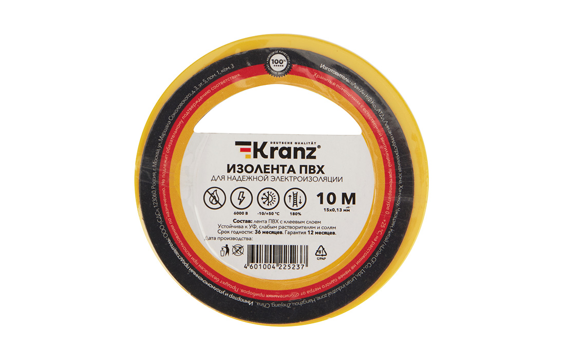 Изолента KRANZ предназначена для электрической изоляции, цветной маркировки, соединения, защиты от внешних факторов и герметизации кабелей, проводов и шнуров.