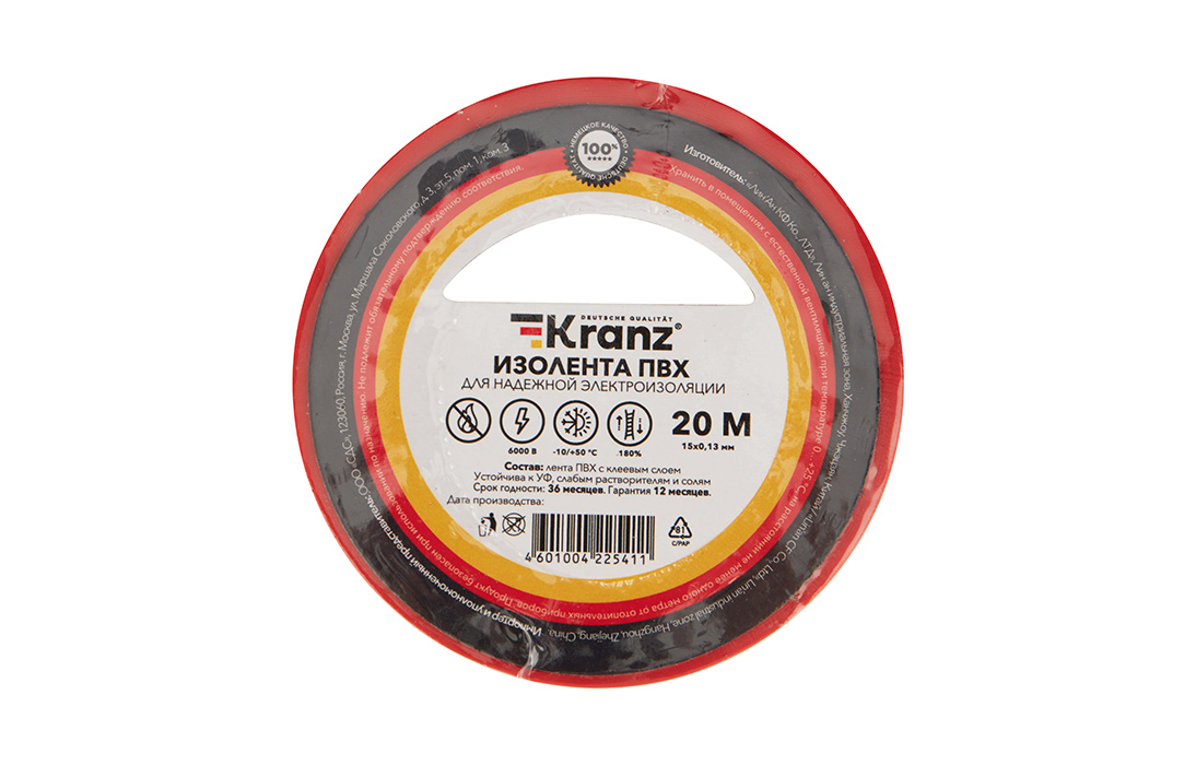 Изолента KRANZ предназначена для электрической изоляции, цветной маркировки, соединения, защиты от внешних факторов и герметизации кабелей, проводов и шнуров.
