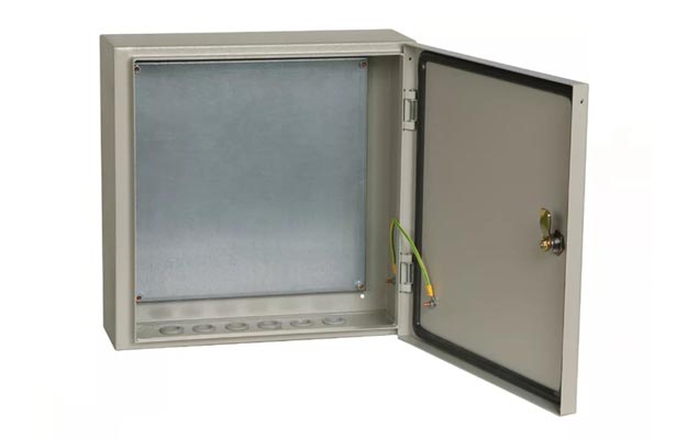 Сварной металлический корпус со съемной монтажной панелью. Дверца корпуса запирается на замок. Ключ замка имеет единый секрет. Корпуса со степенью защиты IP54, имеют на дверце уплотнение из двухкомпонентного герметика и пыле- влагонепроницаемый замок.