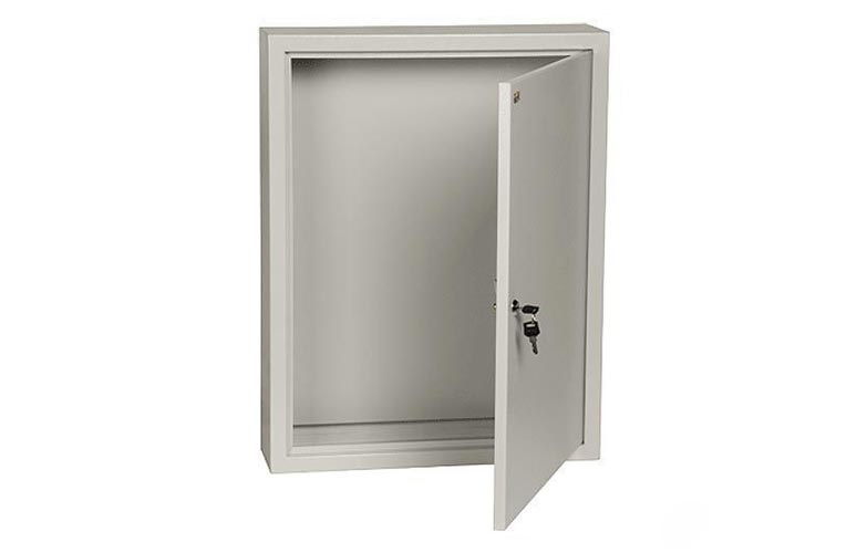 Сварной металлический корпус со съемной монтажной панелью. Дверца корпуса запирается на замок. Ключ замка имеет единый секрет. Корпуса со степенью защиты IP54, имеют на дверце уплотнение из двухкомпонентного герметика и пыле- влагонепроницаемый замок.