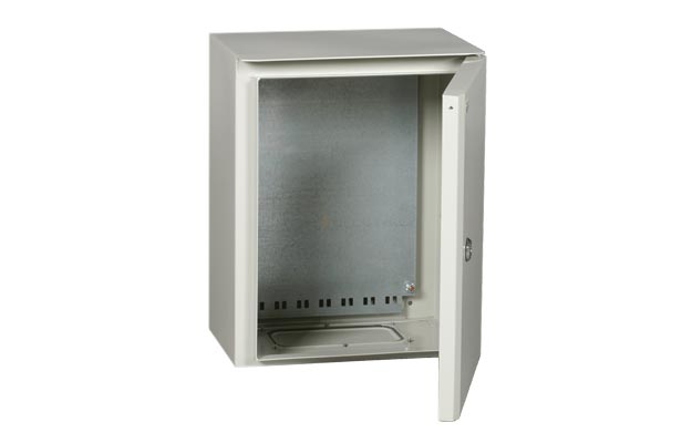 Сварной металлический корпус со съемной монтажной панелью. Дверца корпуса запирается на замок. Ключ замка имеет единый секрет. Корпуса со степенью защиты IP54, имеют на дверце уплотнение из двухкомпонентного герметика и пыле- влагонепроницаемый замок.
