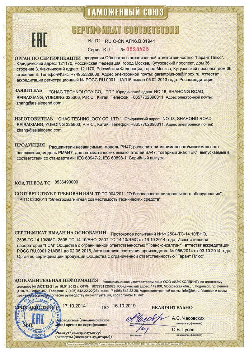 Предназначен для отключения одно-, двух- или трехполюсного автоматического выключателя серии ВА47 при недопустимом снижении или повышении напряжения сети.