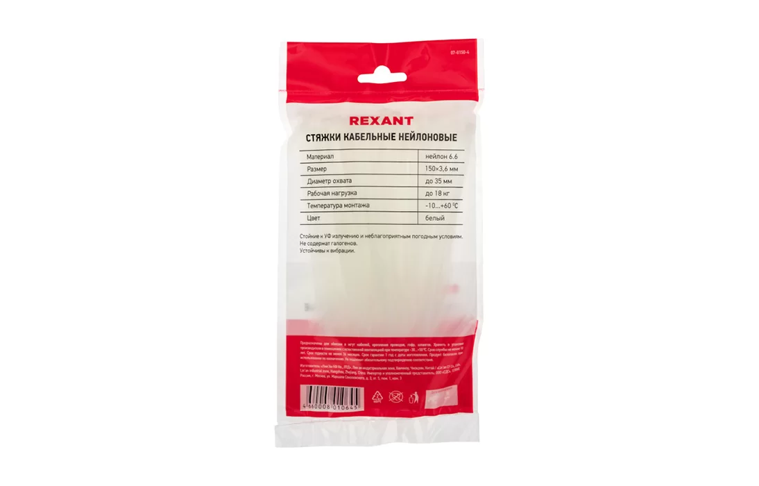 Представляет собой гибкую полоску из нейлона высокой прочности (полиамид-6,6) с замком на конце. Полиамид-6,6 — кристаллизующийся конструкционный материал, имеющий высокую твердость и механическую прочность, отличающийся высокими электроизоляционными свойствами. Имеет высокое сопротивление к основаниям, маслам, смазочным материалам, хлоридным растворителям. Не содержит галогенов.