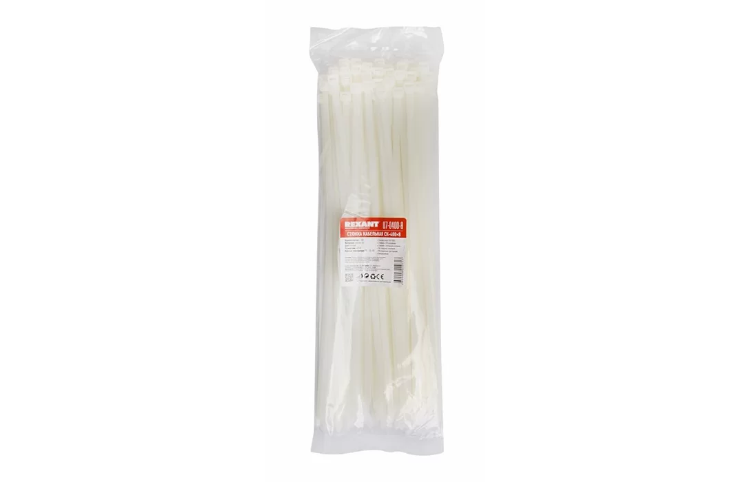 —07-0400-8 Хомут-стяжка кабельная нейлоновая REXANT 400 x7,6 мм, белая, упаковка 100 шт.