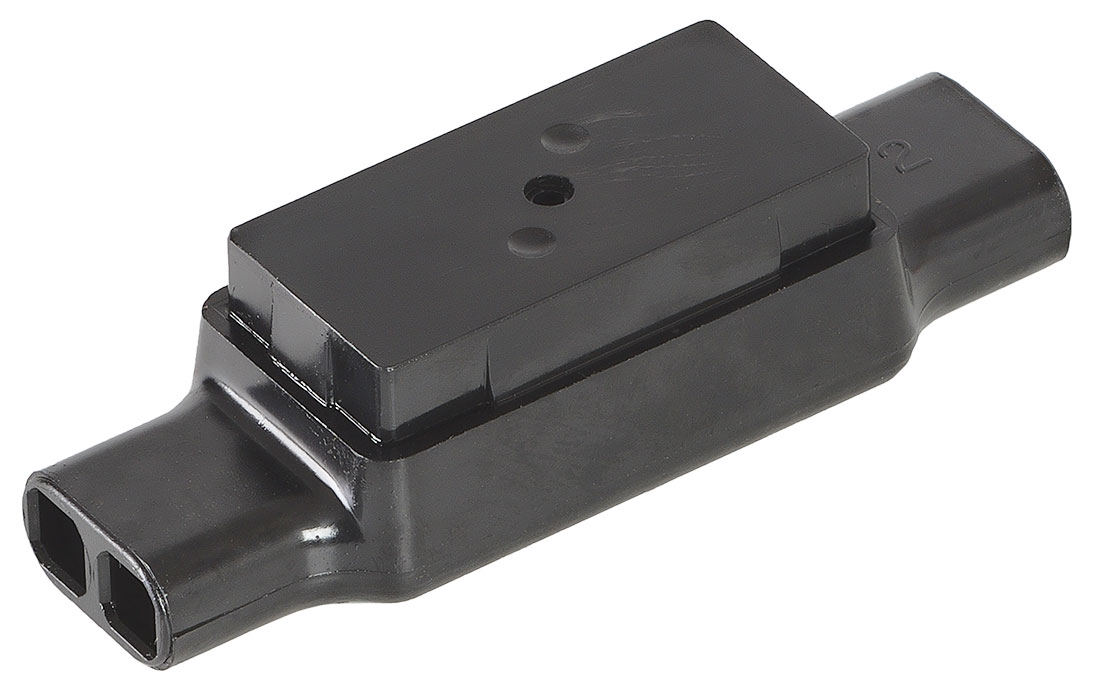 Соединитель однопарный, влагозащищённый, с гидрофобным заполнением внутри корпуса, чёрный, стойкий к воздействию ультрафиолетового излучения.