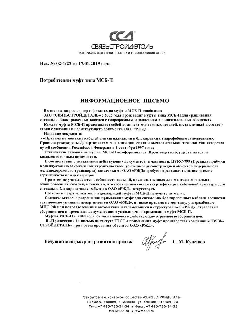 Комплекты муфт составлены в соответствии с действующим документом ОАО «РЖД» – «Правила по монтажу кабелей для сигнализации и блокировки с гидрофобным заполнением». Правила утверждены Департаментом сигнализации, централизации и блокировки.