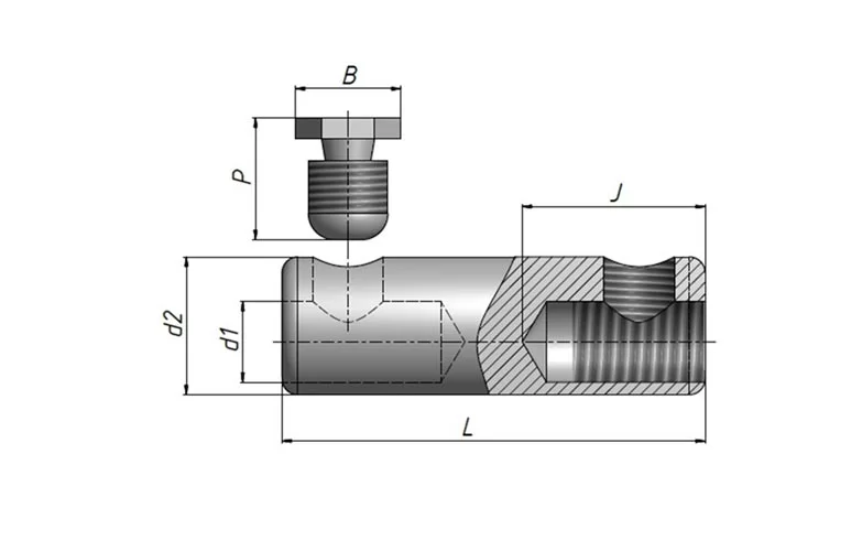 Соединитель СБ закрепляется при помощи болта со специальной срывной головкой, которая скручивается при достижении определенного усилия, обеспечивая надежное соединение.