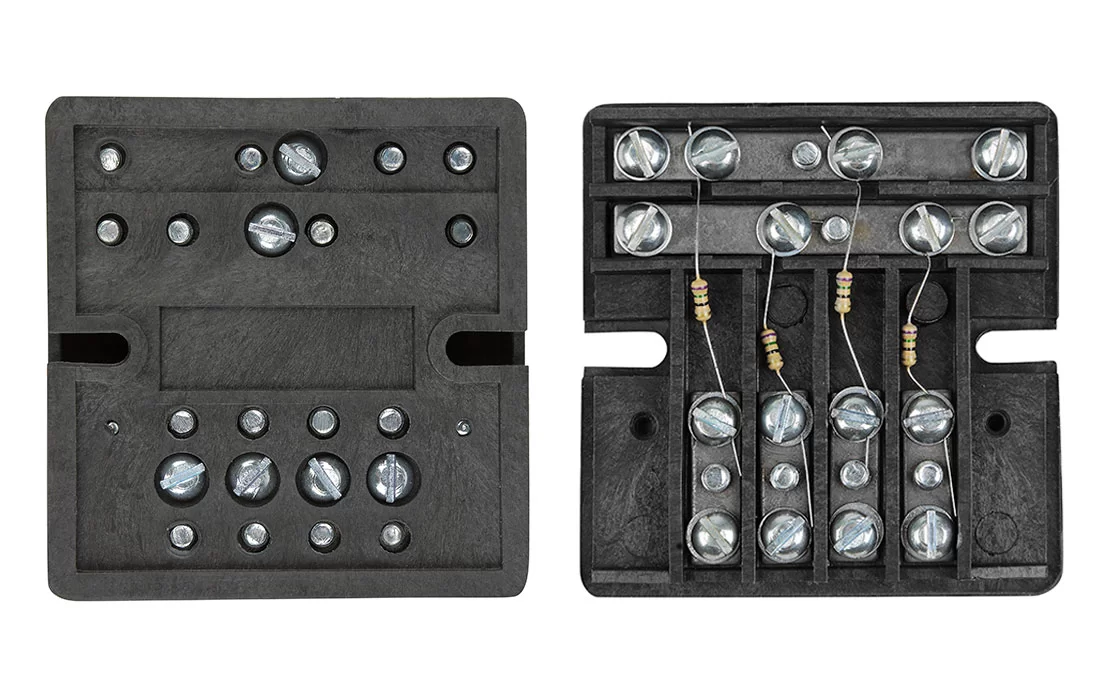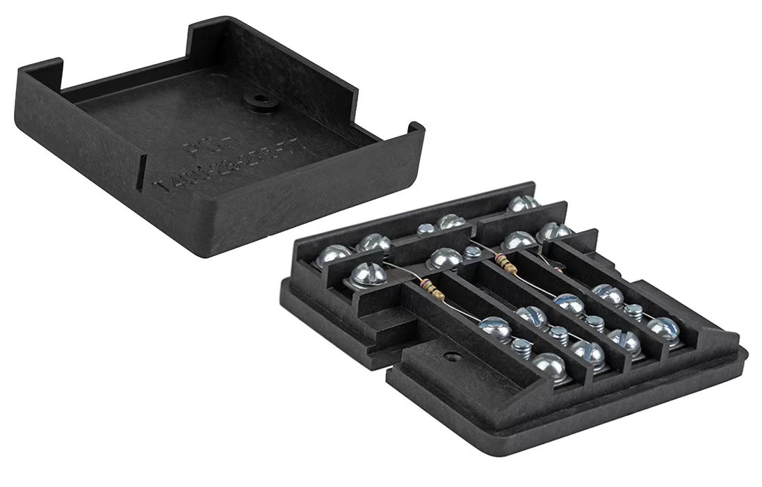 • в коробке установлены 4 резистора типа МЛТ-0,25 сопротивлением 75 Ом