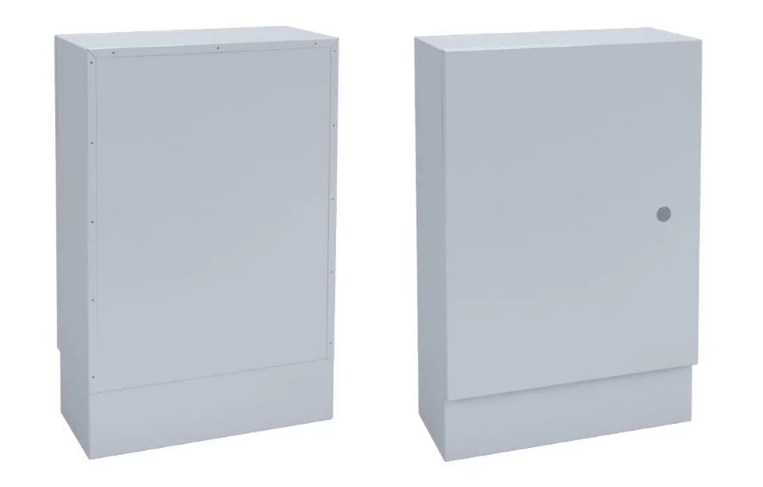 Шкаф состоит из корпуса и цоколя высотой 150 мм. Поставляется пустым в виде корпуса.