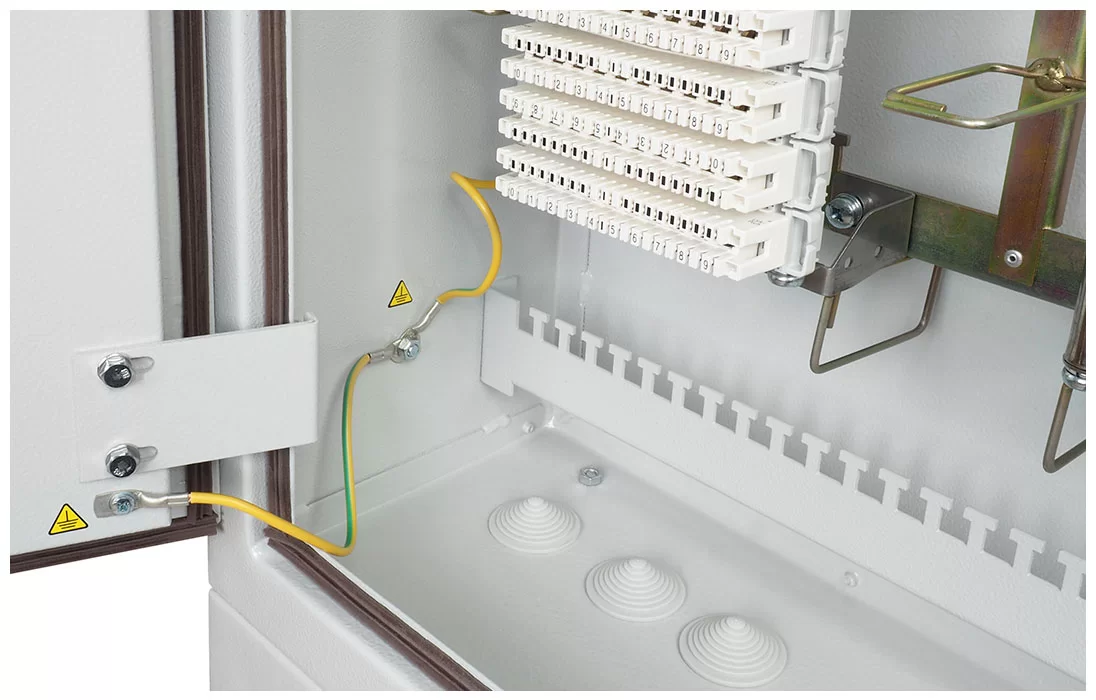 Высокая прочность материала и уплотнители дверей предотвращают попадание внутрь шкафа пыли, влаги и насекомых. Антивандальный замок с приводом на тяге обеспечивает блокировку двери в трех точках.