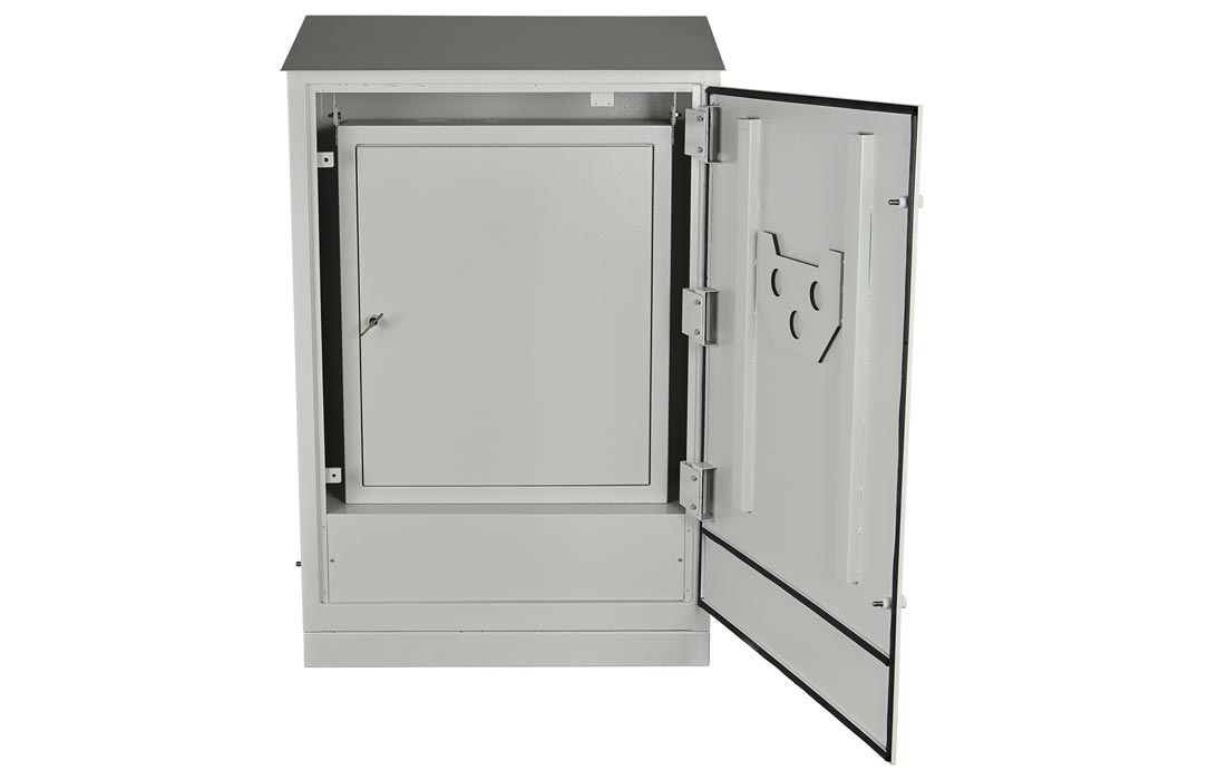 Шкафы типа ШРУД устанавливаются на открытом воздухе. ШРУД представляет собой конструкцию типа термоса с внешним шкафом и со встроенным внутренним шкафом. Внешний шкаф оснащён двумя дверями с винтовыми замками эксцентрикового типа. Благодаря такой конструкции обеспечивается повышенная вандало-устойчивость шкафов.