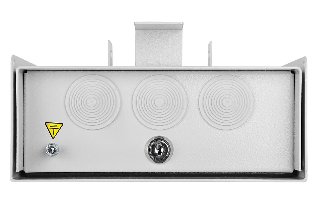 Конструкция крышки ящика исключает попадание внутрь воды даже при нарушении герметичности уплотнителей. Для предотвращения несанкционированного доступа ящик снабжен замком с универсальным секретом.