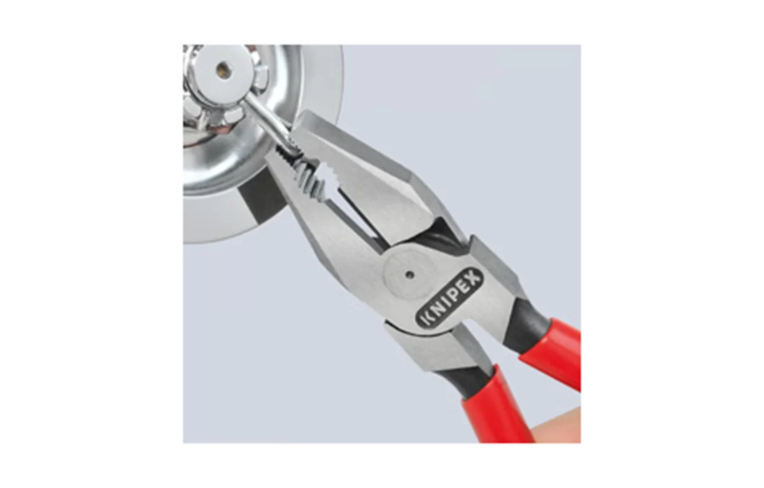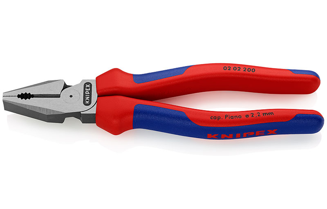 02 02 200 Плоскогубцы комбинированные особой мощности. Экономия усилия 35% по сравнению с обычными комбинированными плоскогубцами. C режущими кромками твердостью 63 HRC, для сложных условий работы. Легкая работа благодаря оптимальной передаче усилия. Легче резать, удобнее захватывать, гнуть и тянуть. Длинные режущие кромки для толстых кабелей. С зонами захвата плоских и круглых деталей. Режущие кромки дополнительно закалены токами высокой частоты до твердости примерно 63 HRC.