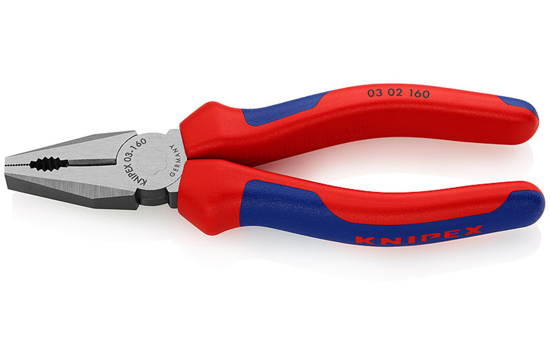 03 02 160 Плоскогубцы комбинированные с зонами захвата плоских и круглых деталей. С режущими кромками для мягкой и твердой проволоки. Длинные режущие кромки для толстых кабелей. Режущие кромки дополнительно закалены токами высокой частоты до твердости примерно 60 HRC. - Параметры резания / проволока средней твёрдости (диаметр): Ø 3,1mm