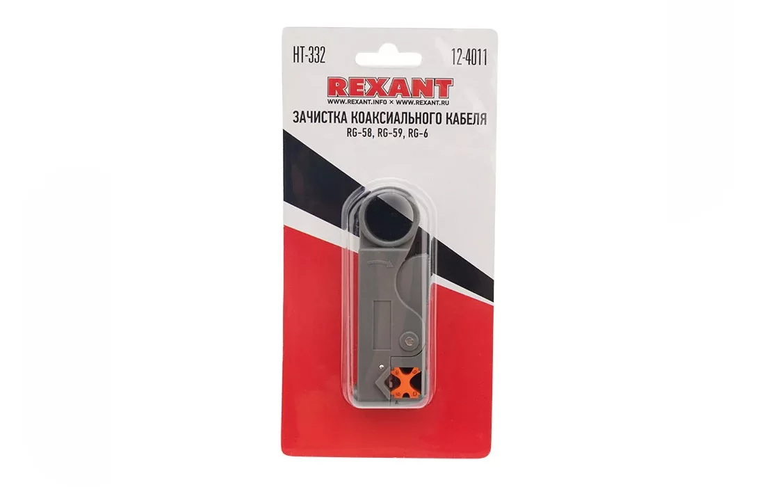 Инструмент REXANT HT-332 предназначен для профессиональной зачистки кабелей RG-58, RG-59 и RG-6.