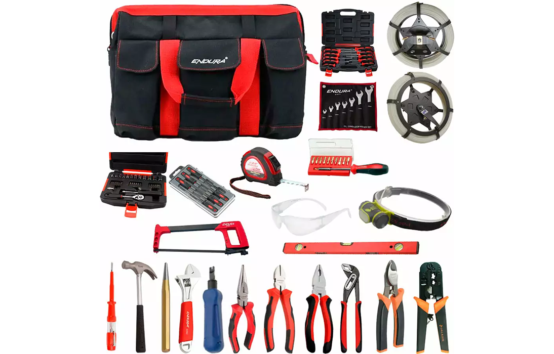 SK-51 – большой набор для монтажа телекоммуникационного оборудования и строительных работ. Содержит все, что может потребоваться для протяжки, резки и разделки кабеля, установки модульных разъемов RJ45/11/22, забивки проводников на телекоммуникационный кросс 66, 110 и KRONE. В наборе предусмотрено много отверток, ключей, слесарно-монтажного инструмента, торцевых головок. Соответственно с его помощью можно выполнять ряд строительных работ, монтаж и демонтаж конструкций, сборку оборудования и не только. Набор поставляется в особо прочной сумке.