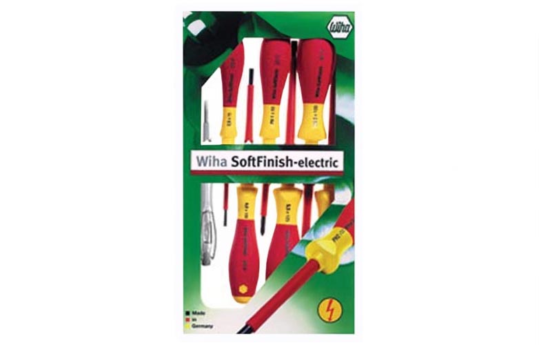 Набор из 7 отверток с индикатором напряжения Wiha для винтов со шлицем и Phillips.