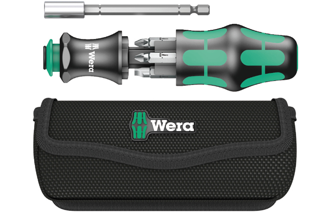 Компактный инструмент Wera Kompakt с многокомпонентной ручкой Kraftform для высокой скорости работы при особой эргономичности. Встроенный в ручку магазин, в котором можно хранить 6 битов. Выдвижной стержень можно задвинуть для работы в ограниченном пространстве. Его также можно извлечь для использования с электроинструментом. С сильным постоянным магнитом для надёжной посадки бита.