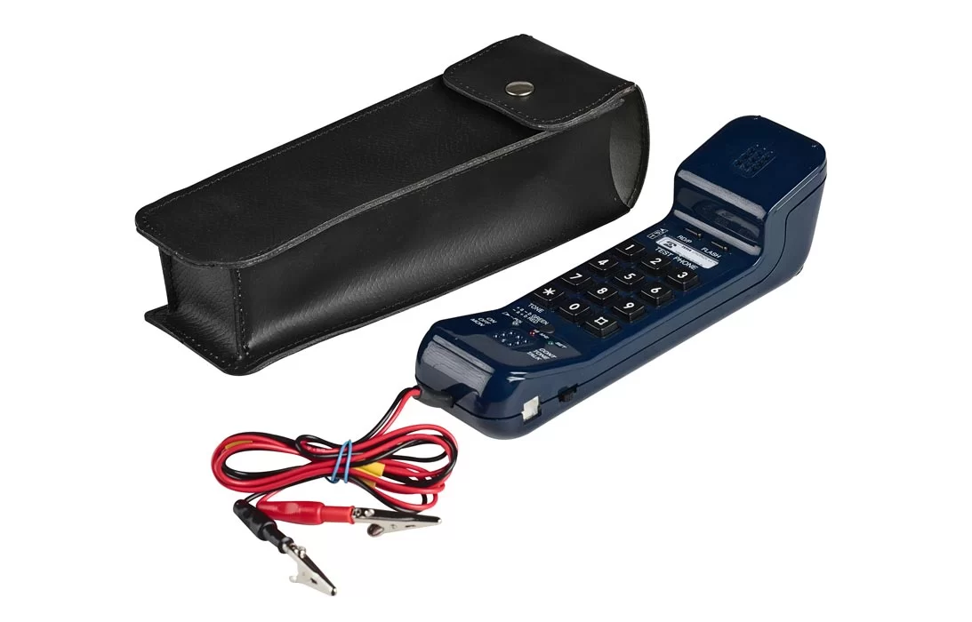 Монтерский телефонный аппарат 4FP 122 40/А Tesla предназначен для специалистов, занимающихся подключением, техническим обслуживанием и ремонтом телефонных линий и оконечного телекоммуникационного оборудования. Данный аппарат предназначен для использования в нормальных климатических условиях. Устройство разрешает тестировать телефонные линии в диапазоне тока питания от 15 до 70 (мА). Индикация отдельных измерений осуществляется прямо на приборе тремя диодами LED. Прибор разрешает контролировать проводимость линии, замыкания линий, передачу низкочастотного сигнала 900 (Гц), полярность линии с помощью двухцветного диода LED, осуществлять световой и акустический контроль наличия тарификационных импульсов (16 кГц), контроль низкочастотного сигнала и мониторинг линии с большим входным сопротивлением. Набор абонентного номера может осуществляться в импульсном режиме (PULSE), частотный режиме (TONE) и смешанном режиме (PULSE - TONE). Долговременное изменение режима набора (PULSE или TONE) разрешает переключатель (P – T), кратковременный переход на частотный режим набора (TONE) осуществится после нажатия кнопки (*). Прибор разрешает повтор последнего набранного номера и вкладывание паузы между сериями (RD/P). Держатель, прочно укрепленный на крышке прибора, разрешает повесить его на монтажную стойку и с помощью карабина (не является составной частью поставки) прикрепленного к держателю, прибор можно повесить на ремень механика или выступ оборудования. Кожаный футляр предназначен для переноса прибора в нерабочем состоянии. Прибору для работы необходимо подключение к батарее 9 В типа 6F22 – батарея не является составной частью поставки прибора. Батарея имеет предназначенное для нее пространство внутри трубки.