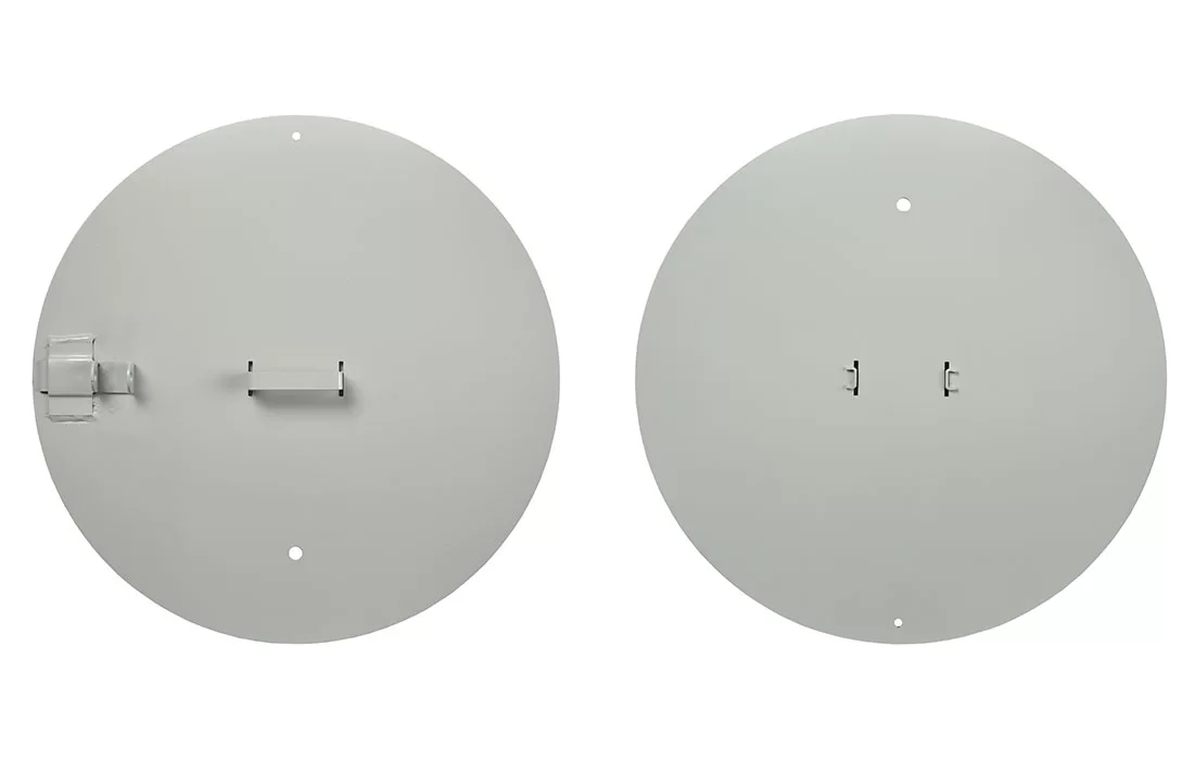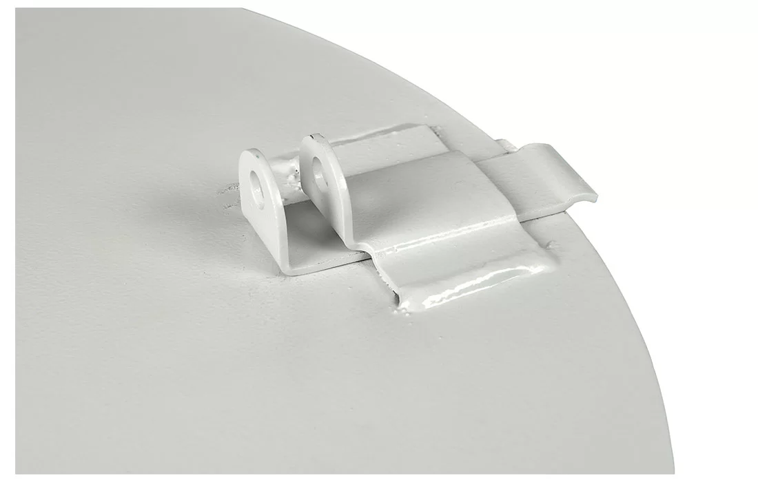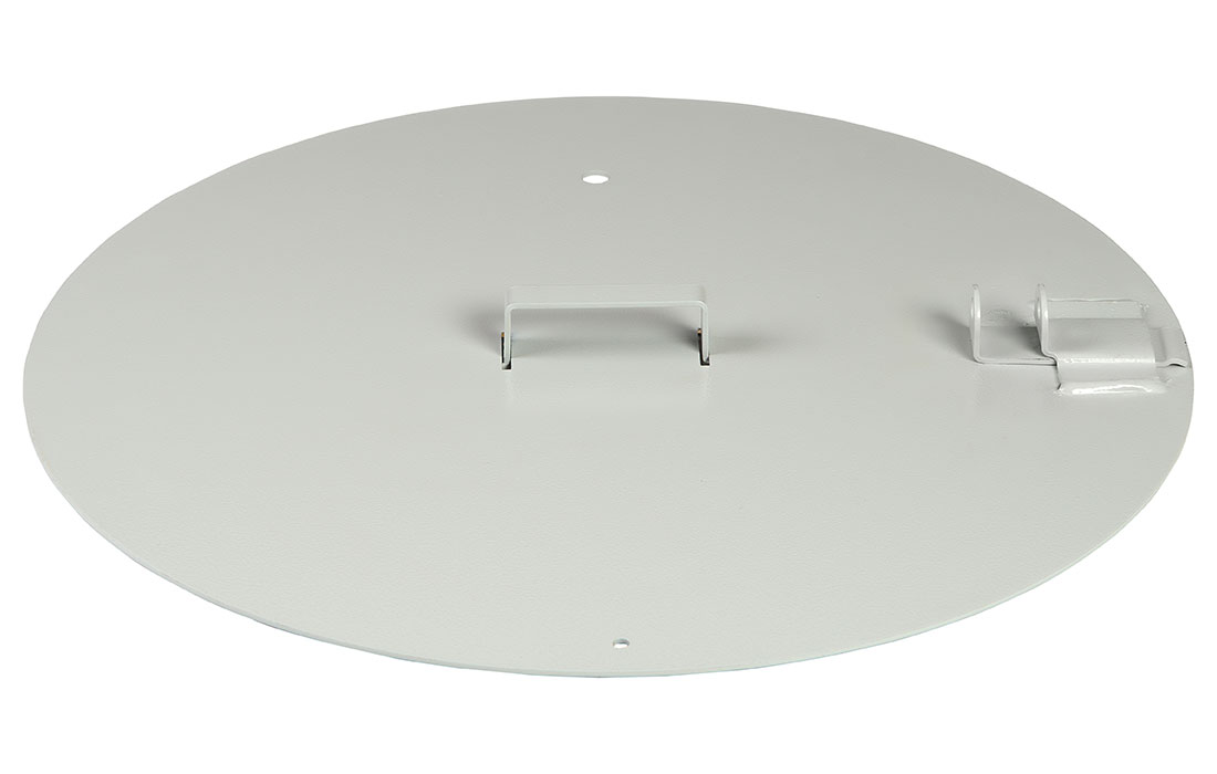 Представляет собой стальную плиту толщиной 3 мм круглой формы, где в качестве запорного элемента имеет подвижную задвижку и скобу с отверстиями для навесного замка. После того, как задвижка входит в паз корпуса люка, в отверстия задвижки и скобы устанавливается навесной замок (приобретается дополнительно). Все элементы крышки люка покрыты порошковой краской.