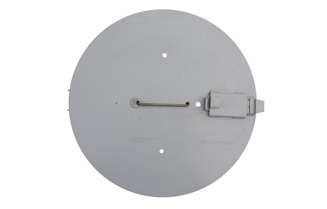 Представляет собой стальную плиту толщиной 3 мм круглой формы, оснащенную задвижкой, которая задвигается в паз корпуса люка, после чего крышка запирается специальным ключом (приобретается дополнительно). Плита крышки покрыта порошковой краской, а замковые элементы и ручка, слоем цинка.